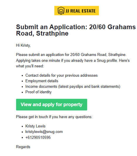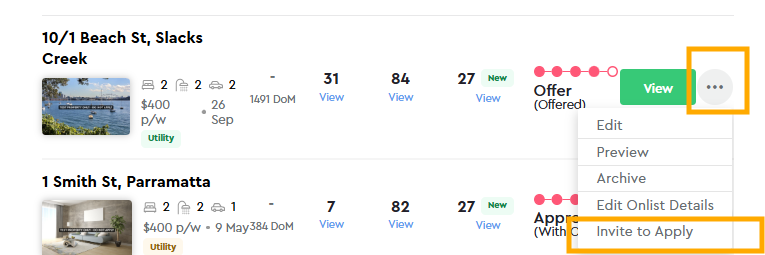 - Send Application Invitations: Automatically invites the existing tenant to apply for the new property via email and/or SMS